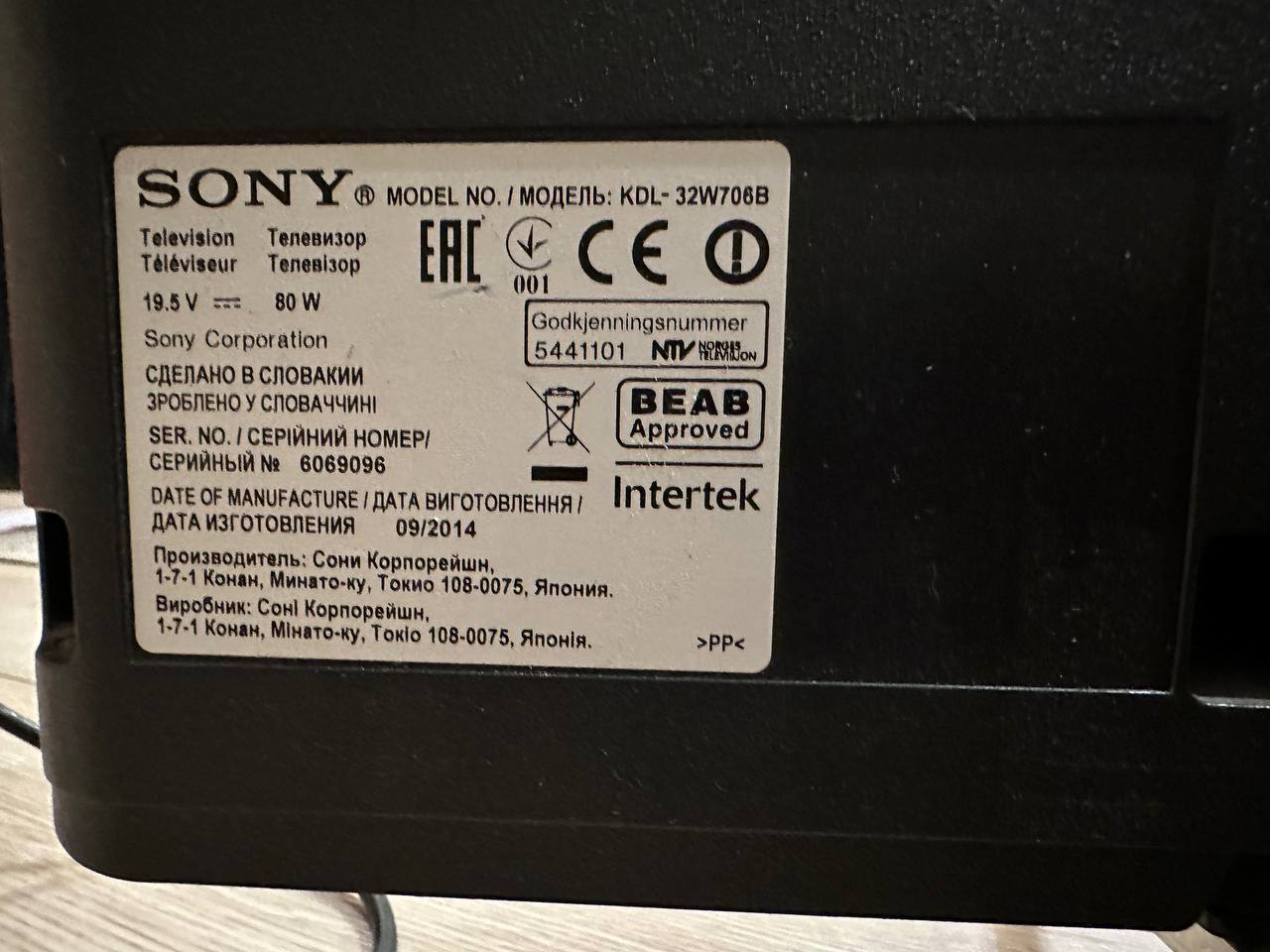 ✔️ KDL- 32W706В