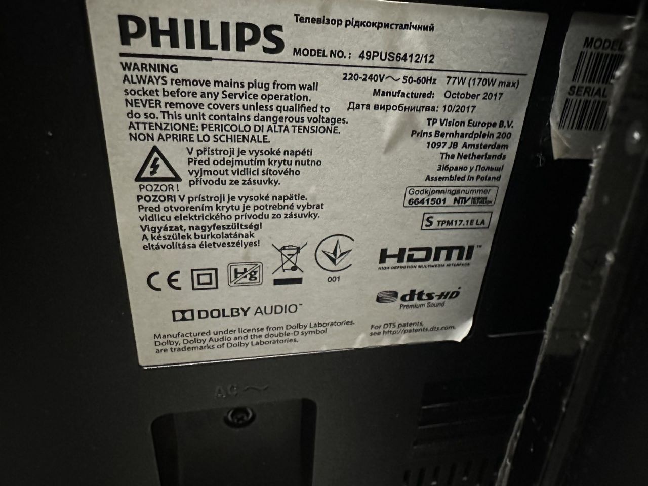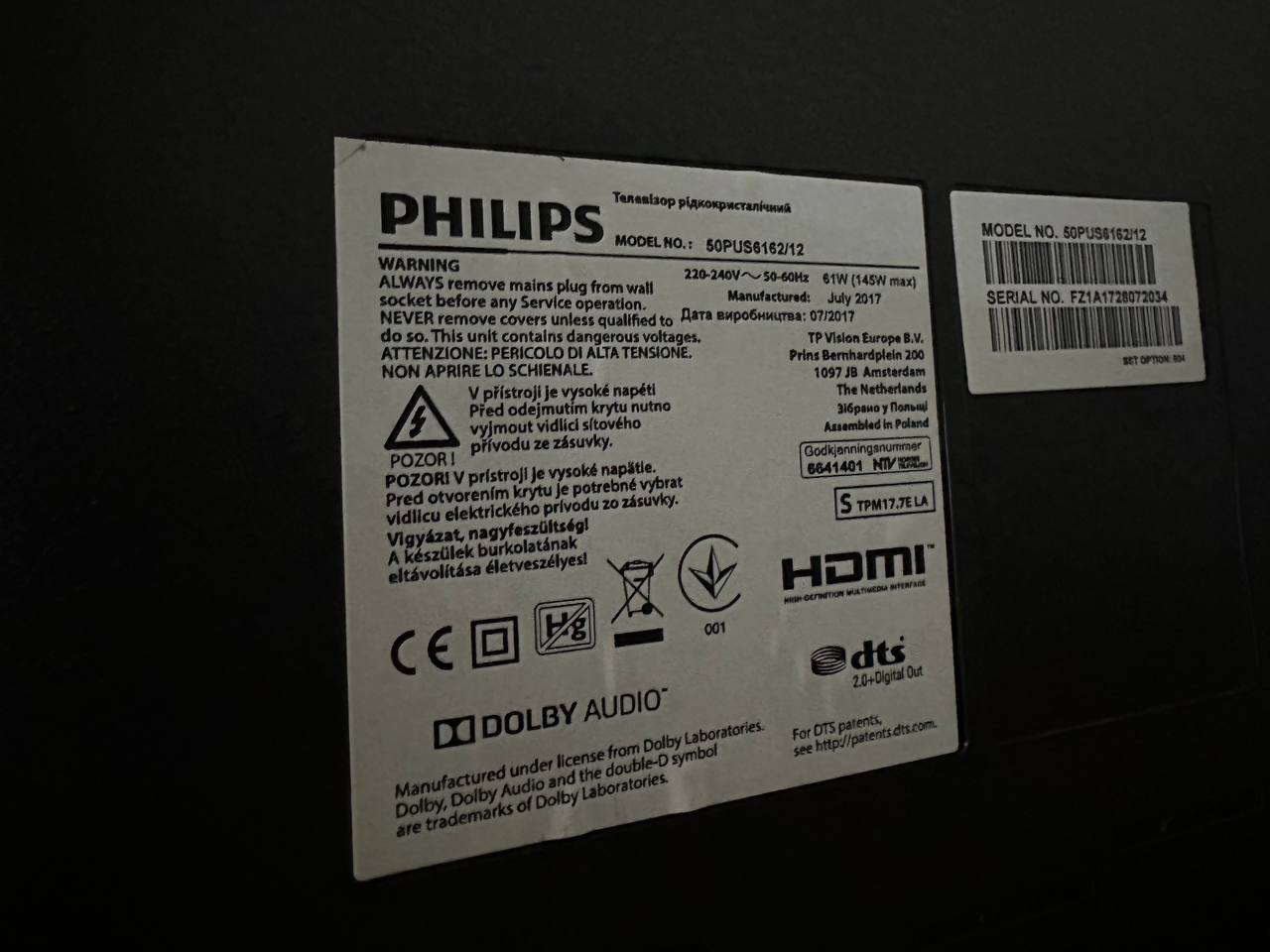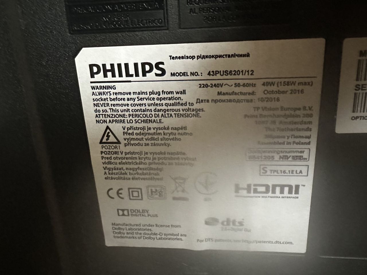 Телевизор Philips 43 дюйма. 43PUS6201/12 2016 рік.